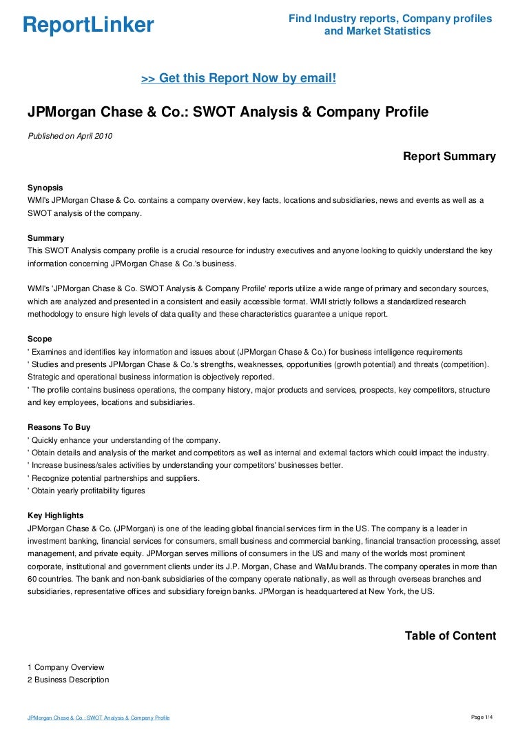 Jpmorgan Chase Co Swot Analysis Company Profile